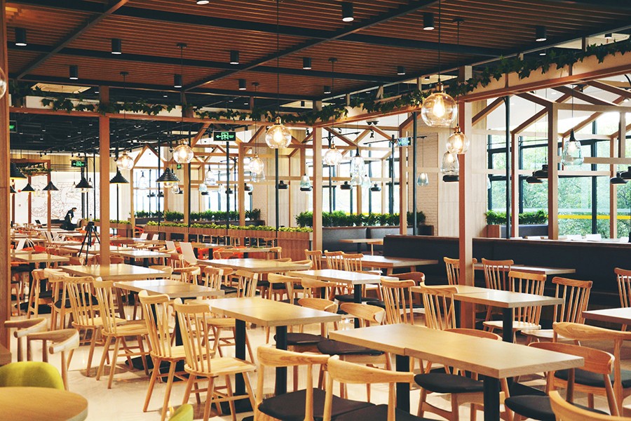 經過三個月的裝修重新開門營業,美食城內美美的裝修風格吸引了華為員工的關注:藤蔓、裝飾架、壁畫散落在各處,配以暖色吊燈;具有錯落感的特色窗口設計,注重燈光與出品的配合;不同區域座位不同擺放方式,植物與木質餐桌營造自然氣氛,整個環境歐范爆棚。